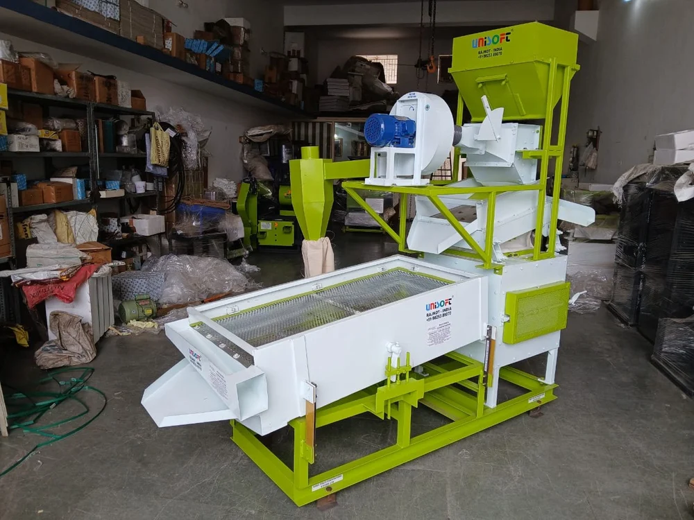 Destoner cum Grader Machine fpor multi crop. all types of grains and seed can process in single machine. cleaning done single process. no need to go with higher plant. asipiration system also can be attached witn minor addition cost. 2 hp 410v ele. motor with copper winding, 400-500 kg /hr capacity